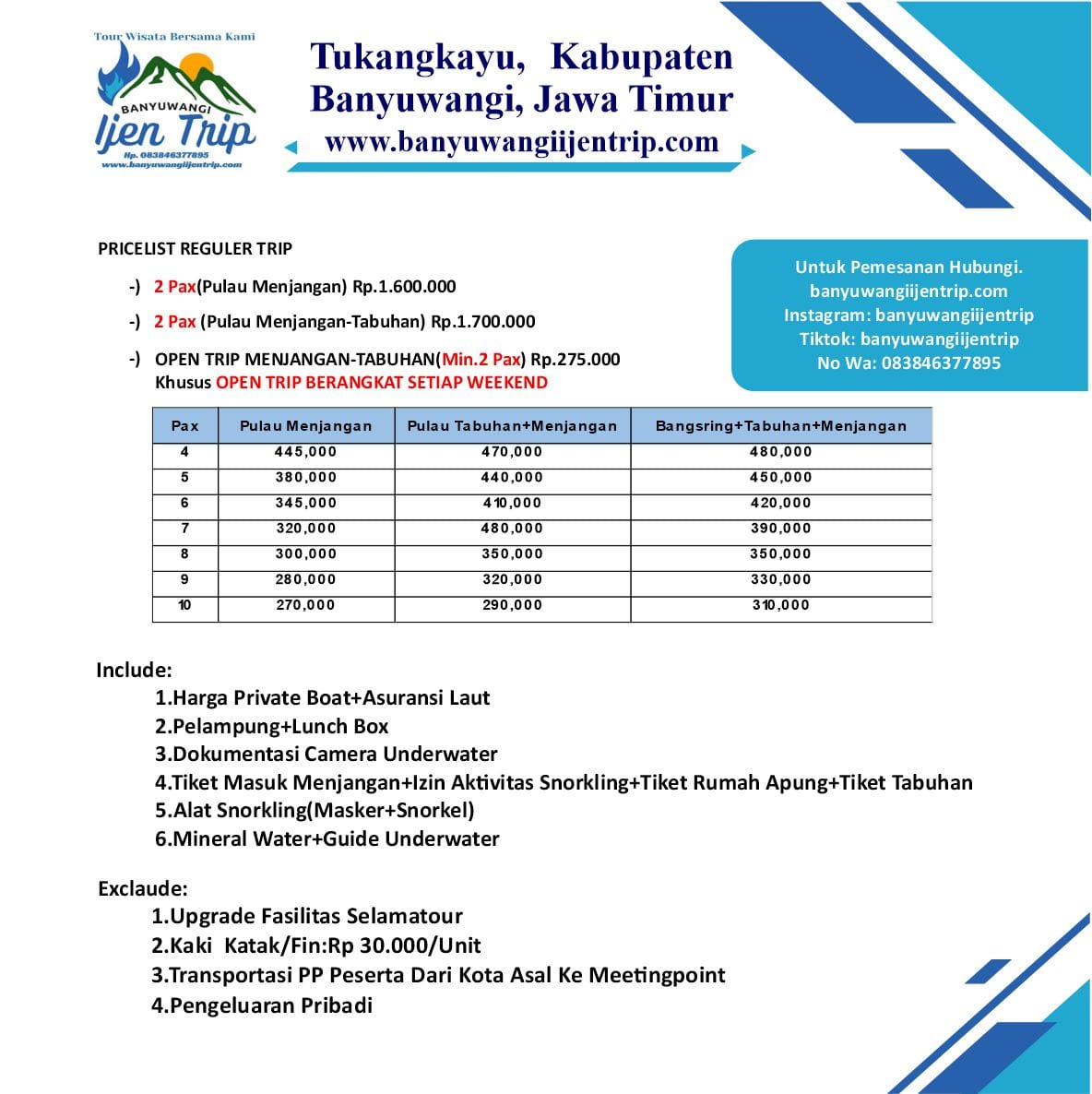 ingin melihat paket lebih lengkap kunjungi Harga Paket Trip Banyuwangiijentrip.com